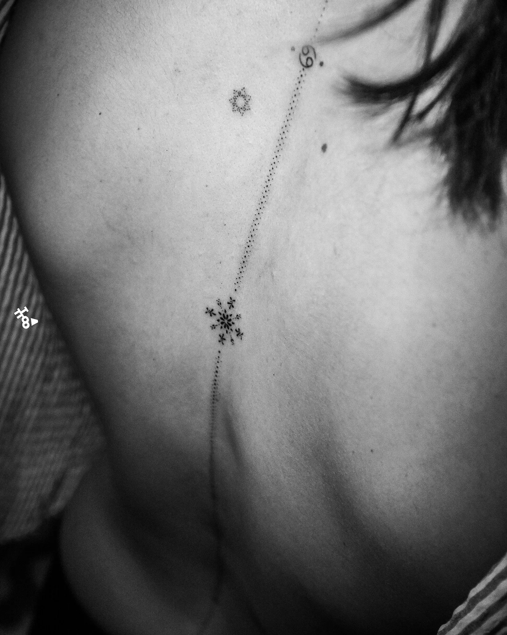 Sessions depend on the design and start at 2500mxn for small punctual pieces. However they normally average 3000-7000mxn since my pieces tend to include some punctual elements, some dancing line and some dot work.